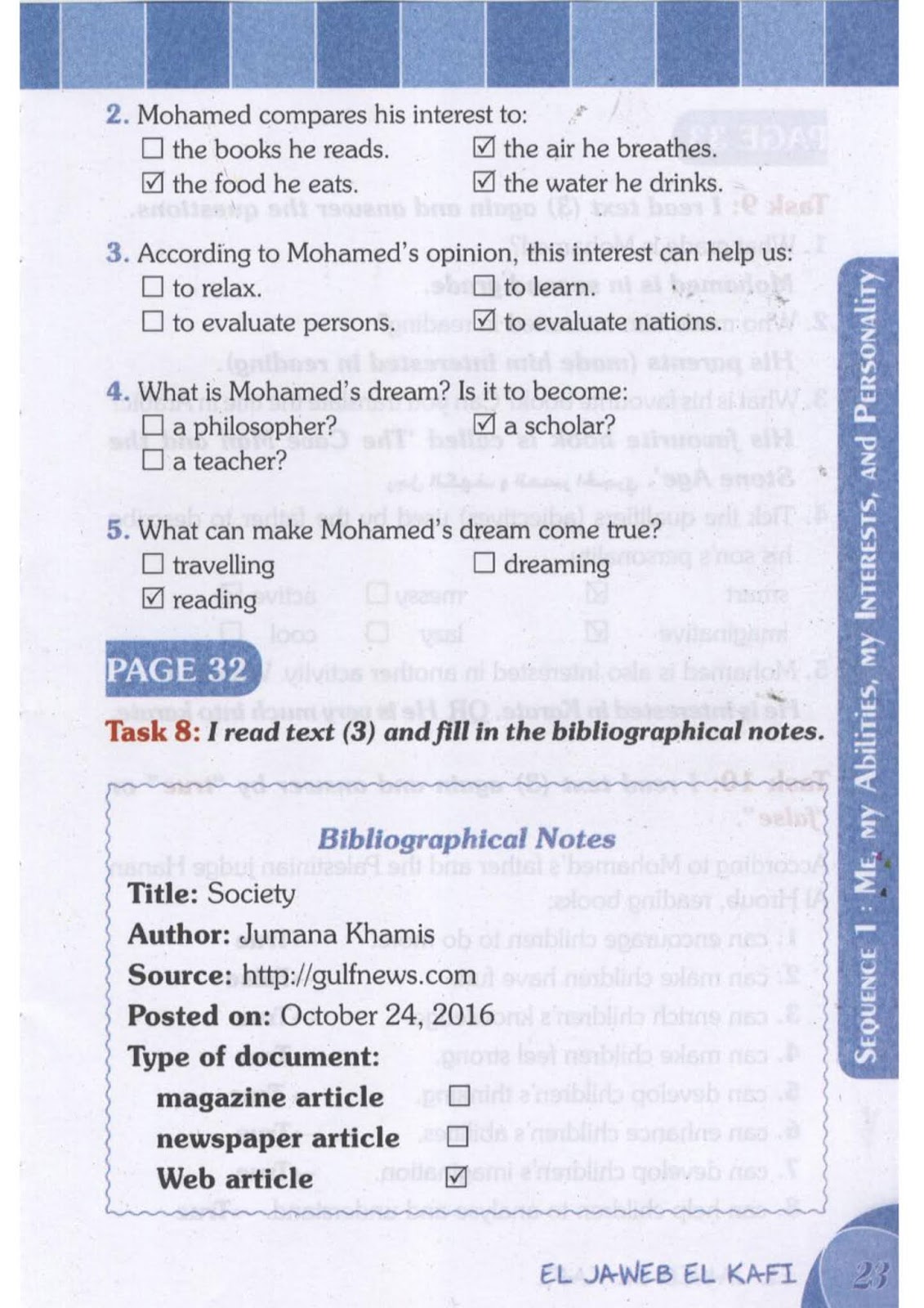 حل تمارين صفحة 32 الإنجليزية للسنة الثالثة متوسط – الجيل الثاني